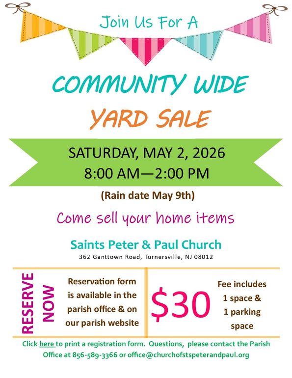 If you are interested or know someone who is, please contact the parish office at 856-589-3366 or office@churchofstspeterandpaul.org.